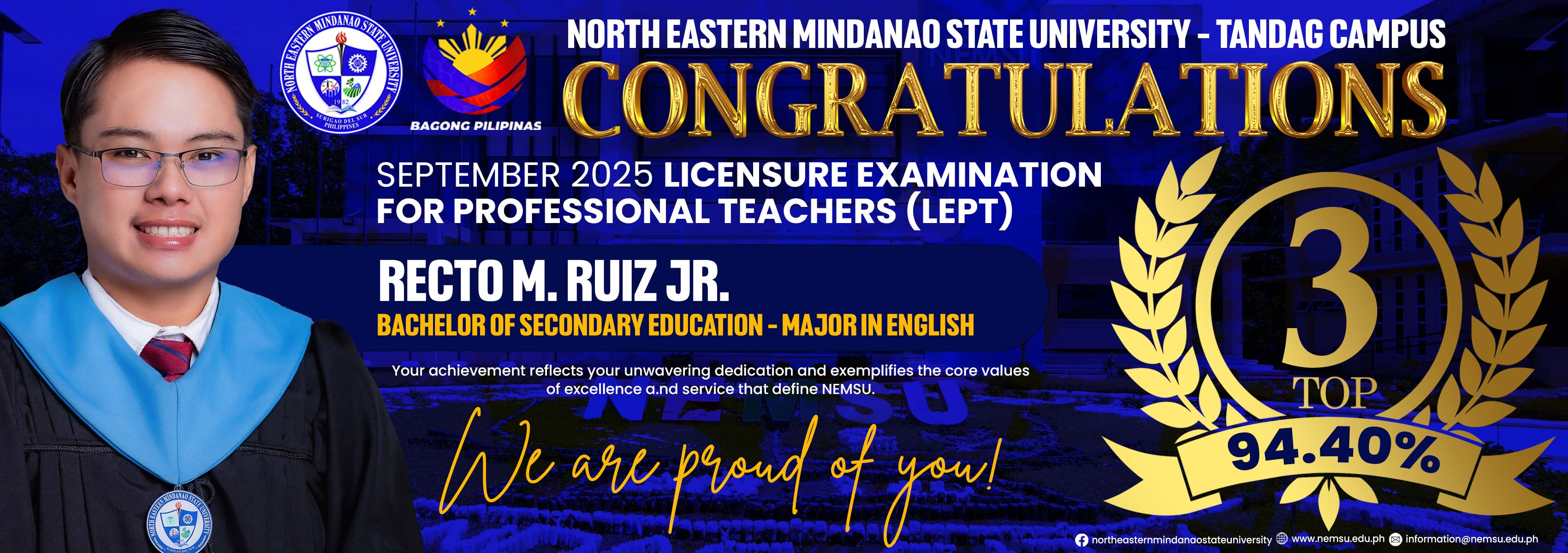 NEMSU-Bislig aims to be the Center for Agroforestry, Paper and Wood Industry. Currently, five (5) of its programs passed the AACCUP Level II accreditation.